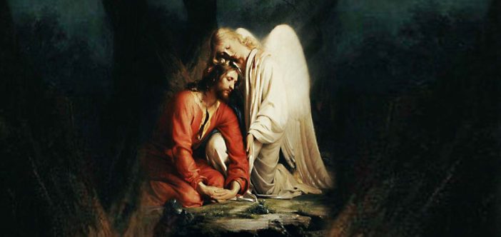 Trước khi bước vào cuộc thương khó, Chúa Giêsu đã cầu nguyện tại vườn Cây Dầu. Phúc Âm thánh Luca kể: “Chúa Giêsu quỳ gối cầu nguyện rằng: ‘Lạy Cha, nếu Cha muốn, xin cho con khỏi uống chén này. Tuy vậy, xin đừng làm theo ý con, mà xin theo ý Cha’. Bấy giờ có thiên thần từ trời hiện đến thêm sức cho Người. Người lâm cơn xao xuyến bồi hồi, nên càng khẩn thiết cầu xin. Và mồ hôi Người như những giọt máu rơi xuống đất” (Lc 22,41-44). Chúa Giêsu đã nhận được sức mạnh từ Chúa Cha, trong đêm hãi hùng đó, để bước vào cuộc thương khó đầy khổ đau, với niềm tin phó thác vào Chúa Cha.