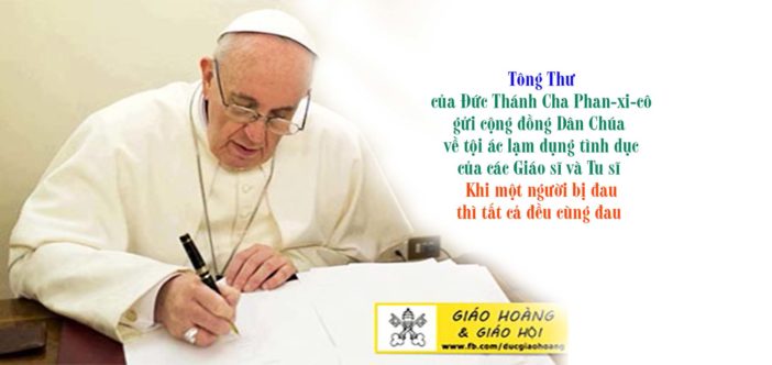 “Nếu một chi thể nào bị đau, thì mọi chi thể khác cũng đều đau chung” (1Cr 12,26). Những lời này của Thánh Phao-lô đang dội lại trong con tim của Cha với tất cả độ mạnh mẽ của nó, khi một lần nữa Cha tái hình dung ra nỗi khổ đau mà nhiều trẻ em vị thành niên đã phải trải qua vì những lạm dụng tình dục cũng như những lạm dụng quyền lực và lương tâm do một số lớn những Giáo sĩ Triều và những Linh mục Dòng gây ra. Đó là một tội ác mà nó đang tạo ra những vết thương sâu hoắm đầy khổ đau và bất lực, đặc biệt là nơi những nạn nhân, nhưng cũng còn cả nơi những thành viên trong gia đình của họ nữa, và trong toàn bộ xã hội, dù đó là các tín hữu hay những người vô thần. Nếu chúng ta nhìn lại quá khứ, thì chúng ta sẽ thấy được rằng, những gì chúng ta đang làm là quá ít, khi chúng ta chỉ cầu xin sự tha thứ và cố gắng khắc phục những thiệt hại có sẵn. Chúng ta hãy nhìn vào tương lai, và qua đó, chúng ta sẽ thấy được những gì mà chúng ta có thể thực hiện, sẽ không bao giờ là quá nhiều để tạo ra một nền văn hóa mà nó ở trong tình trạng giúp cho những hoàn cảnh như thế không những không bị lập lại nữa, nhưng cũng còn không thể tìm ra được một không gian, nơi chúng có thể sống sót một cách ngấm ngầm. Nỗi khổ đau của các nạn nhân và của các gia đình họ cũng là nỗi đớn đau của chúng ta; vì thế, một lần nữa, chúng tai phải khẩn thiết tăng cường những nỗ lực của chúng ta để bảo đảm cho các trẻ em vị thành niên cũng như cho những người trưởng thành một sự bảo vệ trong những hoàn cảnh nhậy cảm.