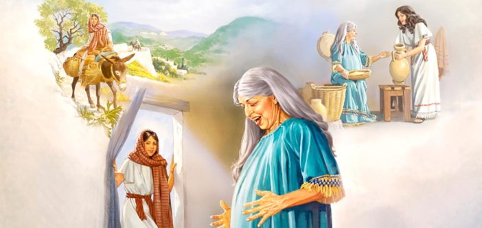 Khi được sứ thần cho biết: Bà Elizabeth đã có thai được sáu tháng, Mẹ vội vã lên đường để đến chúc mừng và giúp chị trong thời gian mang nặng đẻ đau. Mẹ đến chúc mừng vì Elizabeth có thai trong lúc tuổi già là niềm vui cực lớn Chúa ân ban cho chị mình. Thay vì Mẹ ở trong phòng kín để tận hưởng niềm hạnh phúc mà Thiên sứ vừa loan báo cho Mẹ là làm mẹ Thiên Chúa, niềm vinh dự được Thiên Chúa tuyển chọn, Mẹ đã ra khỏi mình để nghĩ đến người chị họ đang cần mình trong lúc lâm bồn.