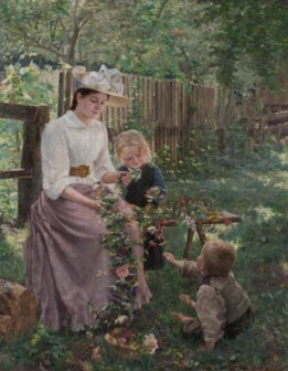 “Một người mẹ trẻ, mắt đầy nét cười; hai ‘chiếc bóng đổ’ theo sau. Bất cứ nơi đâu cô đến, chúng có ngay ở đó, giữ chặt váy cô, leo lên ghế của cô. Trước cô, sau cô; một cặp dính trết. “Đừng bao giờ bạn cảm thấy mệt mỏi, ngày này qua ngày khác, vì ‘hai cái đuôi’ vướng víu ấy! Thật tốt khi bạn chạy, ‘những chiếc bóng đổ’ chạy; khi bạn hạnh phúc, ‘những chiếc bóng đổ’ reo vui; khi bạn ngân nga, ‘những chiếc bóng đổ’ ngân nga. ‘Những chiếc bóng đổ’ cho phép bạn ‘chói lọi như mặt trời!’”.