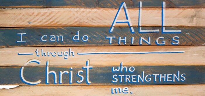 Mọi Sự – trong Chúa Kitô. Trong mọi thời đại và mọi nơi mọi chốn, các Kitô hữu đã học được ý nghĩa của việc làm được tất cả mọi sự “trong Chúa Kitô”. Họ đã học hài lòng với bất cứ thứ gì họ có và với bất cứ hoàn cảnh nào họ phải đối diện. Họ đã học cách để đối phó với những thăng trầm của cuộc sống. Họ đã học được kỹ năng vượt qua các thách đố không phải do sức riêng hay khả năng của mình, nhưng chính yếu là do Chúa Giêsu có thể làm được mọi sự trong họ.
