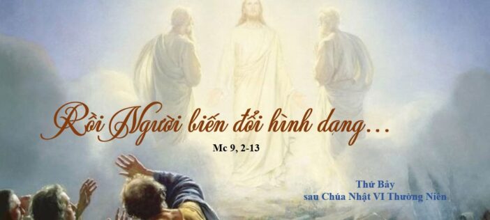 Rồi Người biến đổi hình dạng trước mắt các ông.3 Y phục Người trở nên rực rỡ, trắng tinh, không có thợ nào ở trần gian giặt trắng được như vậy.4 Và ba môn đệ thấy ông Ê-li-a cùng ông Mô-sê hiện ra đàm đạo với Đức Giê-su.5 Bấy giờ, ông Phê-rô thưa với Đức Giê-su rằng: “Thưa Thầy, chúng con ở đây, thật là hay! Chúng con xin dựng ba cái lều, một cho Thầy, một cho ông Mô-sê, và một cho ông Ê-li-a.”6 Thực ra, ông không biết phải nói gì, vì các ông kinh hoàng.7 Bỗng có một đám mây bao phủ các ông. Và từ đám mây, có tiếng phán rằng: “Đây là Con Ta yêu dấu, hãy vâng nghe lời Người.”8 Các ông chợt nhìn quanh, thì không thấy ai nữa, chỉ còn Đức Giê-su với các ông mà thôi.