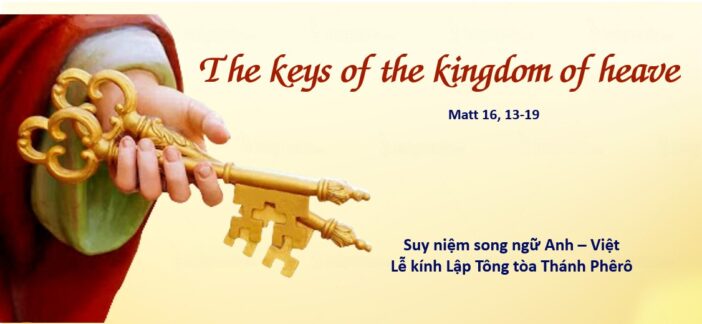 Thứ Ba ngày 22.02.2022 Mt 16,13-19 13 Khi Đức Giê-su đến vùng kế cận thành Xê-da-rê Phi-líp-phê, Người hỏi các môn đệ rằng: “Người ta nói Con Người là ai? “14 Các ông thưa: “Kẻ thì nói là ông Gio-an Tẩy Giả, kẻ thì bảo là ông Ê-li-a, có người lại cho là ông Giê-rê-mi-a hay một trong các vị ngôn sứ.”15 Đức Giê-su lại hỏi: “Còn anh em, anh em bảo Thầy là ai? “16 Ông Si-môn Phê-rô thưa: “Thầy là Đấng Ki-tô, Con Thiên Chúa hằng sống.”17 Đức Giê-su nói với ông: “Này anh Si-môn con ông Giô-na, anh thật là người có phúc, vì không phải phàm nhân mặc khải cho anh điều ấy, nhưng là Cha của Thầy, Đấng ngự trên trời.18 Còn Thầy, Thầy bảo cho anh biết: anh là Phê-rô, nghĩa là Tảng Đá, trên tảng đá này, Thầy sẽ xây Hội Thánh của Thầy, và quyền lực tử thần sẽ không thắng nổi.19 Thầy sẽ trao cho anh chìa khoá Nước Trời: dưới đất, anh cầm buộc điều gì, trên trời cũng sẽ cầm buộc như vậy; dưới đất, anh tháo cởi điều gì, trên trời cũng sẽ tháo cởi như vậy.” |