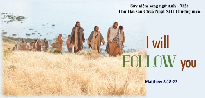 Lạy Thầy, con sẽ theo Thầy bất cứ nơi đâu Mt 8,18-22 18 Thấy xung quanh có đám đông, Đức Giê-su ra lệnh sang bờ bên kia.19 Một kinh sư tiến đến thưa Người rằng: “Thưa Thầy, Thầy đi đâu, tôi cũng xin đi theo.”20 Đức Giê-su trả lời: “Con chồn có hang, chim trời có tổ, nhưng Con Người không có chỗ tựa đầu.”21 Một môn đệ khác thưa với Người: “Thưa Ngài, xin cho phép con về chôn cất cha con trước đã.”22 Đức Giê-su bảo: “Anh hãy đi theo tôi, cứ để kẻ chết chôn kẻ chết của họ.” |