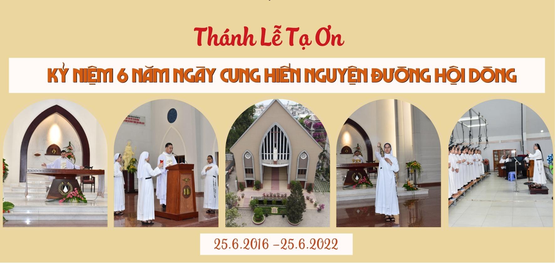 Với tâm tình tri ân Thiên Chúa; cám ơn quý Mẹ, quý Chị đi trước; và biết ơn quý Đức Cha, quý Cha và quý ân nhân đã hỗ trợ xây dựng ngôi Nhà nguyện khang trang, tồn tại đã 50 năm giữa bao biến đổi thăng trầm của thời cuộc và đã được Cung hiến cho Thiên Chúa vào ngày này 6 năm trước; rạng sáng nay, ngày 25.6.2022, quý Bề trên các Cộng đoàn và toàn thể chị em trực thuộc Tu viện Trung ương đã long trọng tổ chức Thánh lễ Tạ ơn kỷ niệm ngày Cung hiến Nguyện đường. Thánh lễ do cha Phêrô Cao Văn Xiêm – phó xứ Trinh Vương – cử hành.