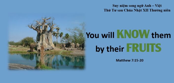 Cứ xem họ sinh hoa quả nào, thì biết họ là ai Mt 7,15-20 15 “Anh em hãy coi chừng các ngôn sứ giả, họ đội lốt chiên mà đến với anh em; nhưng bên trong, họ là sói dữ tham mồi.16 Cứ xem họ sinh hoa quả nào, thì biết họ là ai. Ở bụi gai, làm gì có nho mà hái? Trên cây găng, làm gì có vả mà bẻ?17 Nên hễ cây tốt thì sinh quả tốt, cây xấu thì sinh quả xấu.18 Cây tốt không thể sinh quả xấu, cũng như cây xấu không thể sinh quả tốt.19 Cây nào không sinh quả tốt, thì bị chặt đi và quăng vào lửa.20 Vậy, cứ xem họ sinh hoa quả nào, thì biết họ là ai. |