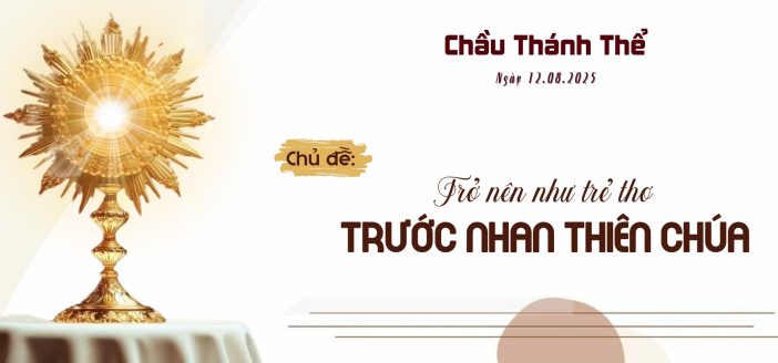 Lạy Chúa, qua Thánh Thể, chúng con được mời gọi sống theo gương của những đứa trẻ bé mọn, những linh hồn trong sáng và luôn tin tưởng vào tình yêu vô bờ của Ngài. Xin ban cho chúng con một trái tim trẻ thơ, để mỗi khi đến trước Thánh Thể, chúng con biết bán những của hữu của mình, bố thí những điều tinh khiết, và tích trữ kho tàng trên trời – kho tàng của đức tin, hy vọng và yêu thương.