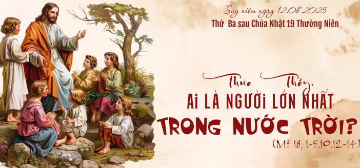 1 Lúc ấy, các môn đệ lại gần hỏi Đức Giêsu rằng: “Thưa Thầy, ai là người lớn nhất trong Nước Trời? “2 Đức Giêsu liền gọi một em nhỏ đến, đặt vào giữa các ông3 và bảo: “Thầy bảo thật anh em: nếu anh em không trở lại mà nên như trẻ nhỏ, thì sẽ chẳng được vào Nước Trời. 4 “Vậy ai tự hạ, coi mình như em nhỏ này, người ấy sẽ là người lớn nhất Nước Trời. 5 “Còn ai tiếp đón một em nhỏ như em này vì danh Thầy, là tiếp đón chính Thầy.