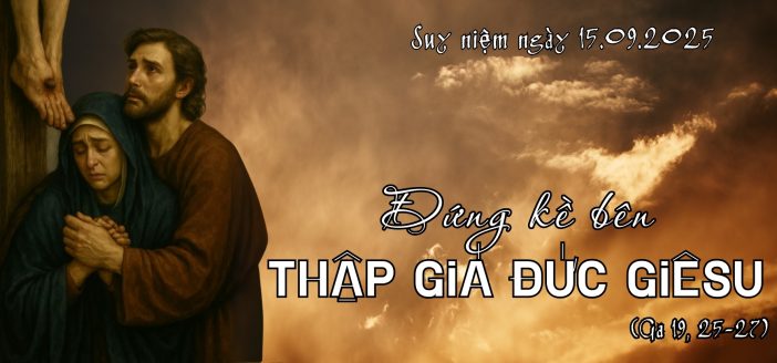 Đứng kề bên thập giá Đức Giêsu Ga 19, 25-27 25 Đứng gần thập giá Đức Giê-su, có thân mẫu Người, chị của thân mẫu, bà Ma-ri-a vợ ông Cơ-lô-pát, cùng với bà Ma-ri-a Mác-đa-la.26 Khi thấy thân mẫu và môn đệ mình thương mến đứng bên cạnh, Đức Giê-su nói với thân mẫu rằng: “Thưa Bà, đây là con của Bà.”27 Rồi Người nói với môn đệ: “Đây là mẹ của anh.” Kể từ giờ đó, người môn đệ rước bà về nhà mình. |