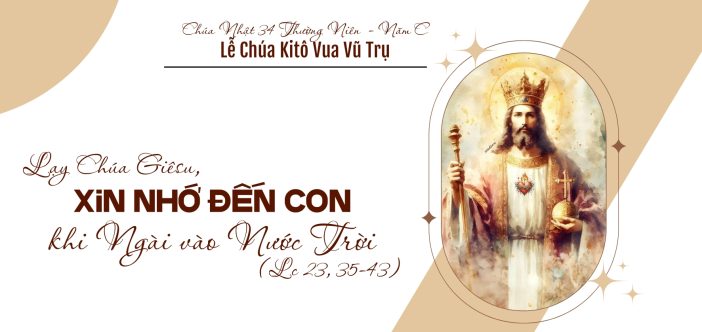 “Jesus, remember me when you come into your kingdom” Scripture: Luke 23:35-43 35 And the people stood by, waThiên Chúahing; but the rulers scoffed at him, saying, “He saved others; let him save himself, if he is the Christ of God, his Chosen One!” 36 The soldiers also mocked him, coming up and offering him vinegar, 37 and saying, “If you are the King of the Jews, save yourself!” 38 There was also an inscription over him, “This is the King of the Jews.” 39 One of the criminals who were hanged railed at him, saying, “Are you not the Christ? Save yourself and us!” 40 But the other rebuked him, saying, “Do you not fear God, since you are under the same sentence of condemnation? 41 And we indeed justly; for we are receiving the due reward of our deeds; but this man has done nothing wrong.” 42 And he said, “Jesus, remember me when you come into your kingdom.” 43 And he said to him, “Truly, I say to you, today you will be with me in Paradise.” |