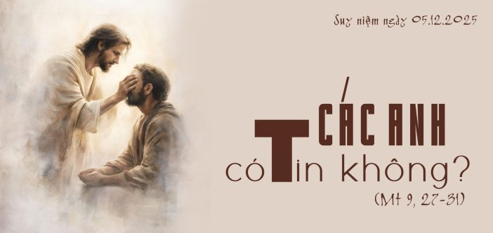 Khi hai người mù đến gần Đức Giêsu, Người chất vấn lòng khao khát của họ: “Các anh có tin rằng Ta có thể làm được điều này không?” Đức Giêsu thử thách họ, Người không từ chối họ, nhưng để tăng cường sự tin cậy của họ vào lòng thương xót của Chúa. Người chạm vào mắt họ, cả việc nhận ra sự khốn khổ của mình và đánh thức niềm tin trong lòng họ. Đức tin của họ lớn lên như khi họ đáp lại lời của Người với niềm hy vọng vững vàng. Đức Giêsu đã phục hồi thị giác cho họ – cả về thể lý và tinh thần đối với thực tại vương quốc của Thiên Chúa. Đức tin mở đường cho chúng ta nhìn thấy quyền năng của vương quốc Chúa và cảm nghiệm sự hiện diện chữa lành của Người trong cuộc đời chúng ta.