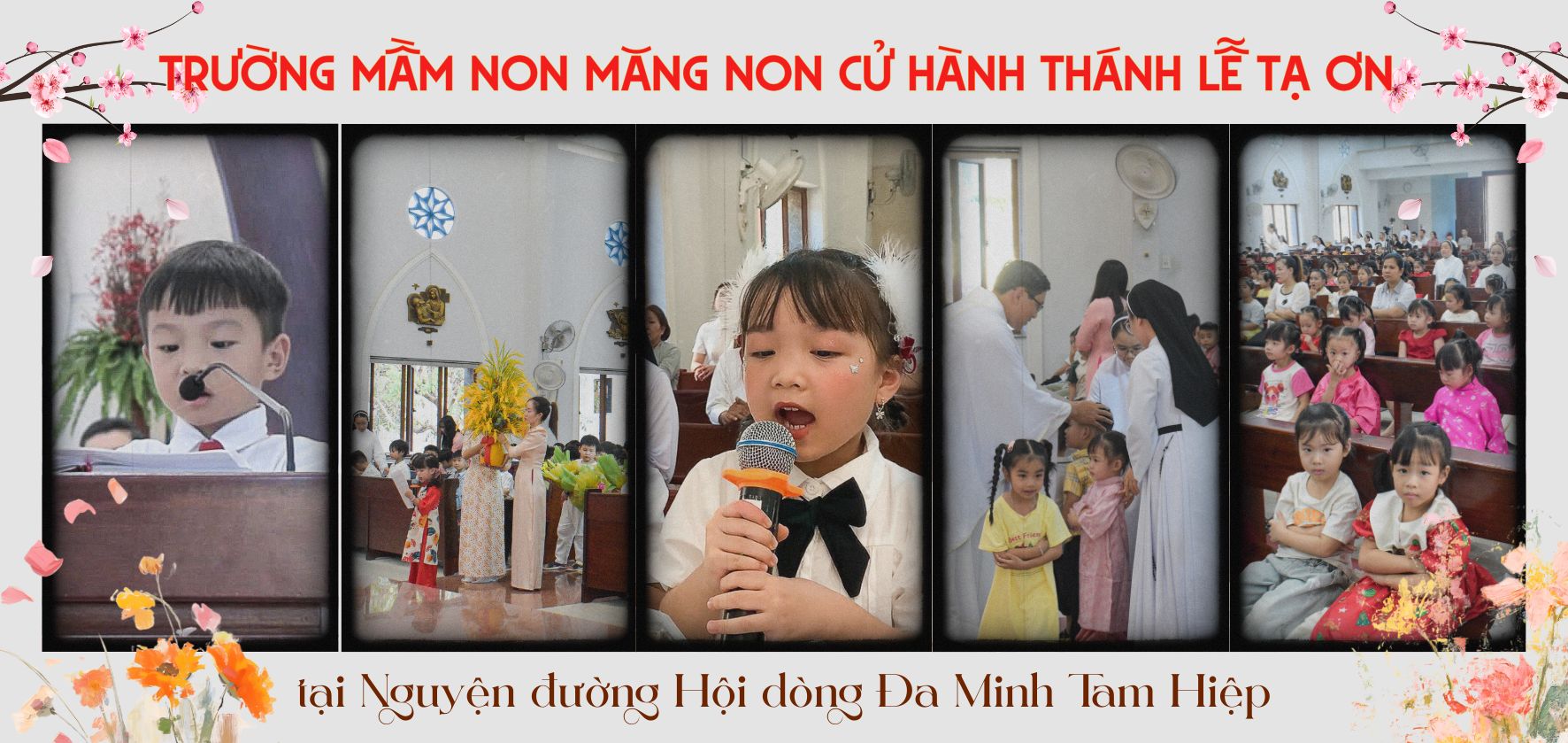 Giữa không gian linh thiêng của nguyện đường Hội dòng Đa Minh Tam Hiệp, hình ảnh các bé Trường Mầm non Măng Non trong những bộ trang phục dành cho ngày Tết, tay khoanh nghiêm trang tham dự Thánh lễ Đức Mẹ Dâng Chúa Giêsu vào Đền Thánh (02/02/2026) và Tạ ơn cuối năm Âm lịch, đã trở thành một khung cảnh thật đẹp và đầy ý nghĩa. Trong ánh nhìn đơn sơ và lòng sốt sắng trẻ thơ ấy, dường như niềm vui của Thiên Chúa được phản chiếu trong từng nụ cười tươi tắn và đôi mắt trong veo ngước nhìn lên bàn thờ.