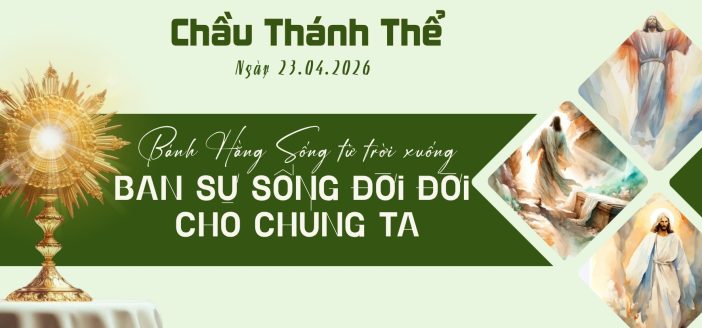 Xin Chúa giúp chúng con ghi nhớ và sống theo những lời giáo huấn của Chúa về Bánh Hằng Sống: biết tin tưởng vào sự lôi kéo của Chúa Cha, biết khao khát lãnh nhận Chúa trong Bí tích, và biết chia sẻ sự sống đời đời với anh em. Xin cho chúng con biết tin tưởng vào công trình thầm lặng của Chúa, kiên nhẫn chờ đợi sự sống đời đời nảy mầm trong lòng, và trở nên những mảnh đất màu mỡ để cuộc đời chúng con không ngừng trổ sinh hoa trái yêu thương, bác ái và tha thứ. Xin cho chúng con trở nên những người mang Bánh Thánh đến cho thế gian, thành nơi nương náu cho những tâm hồn đang đói khát Chúa, dù chúng con chỉ là những kẻ nhỏ bé.