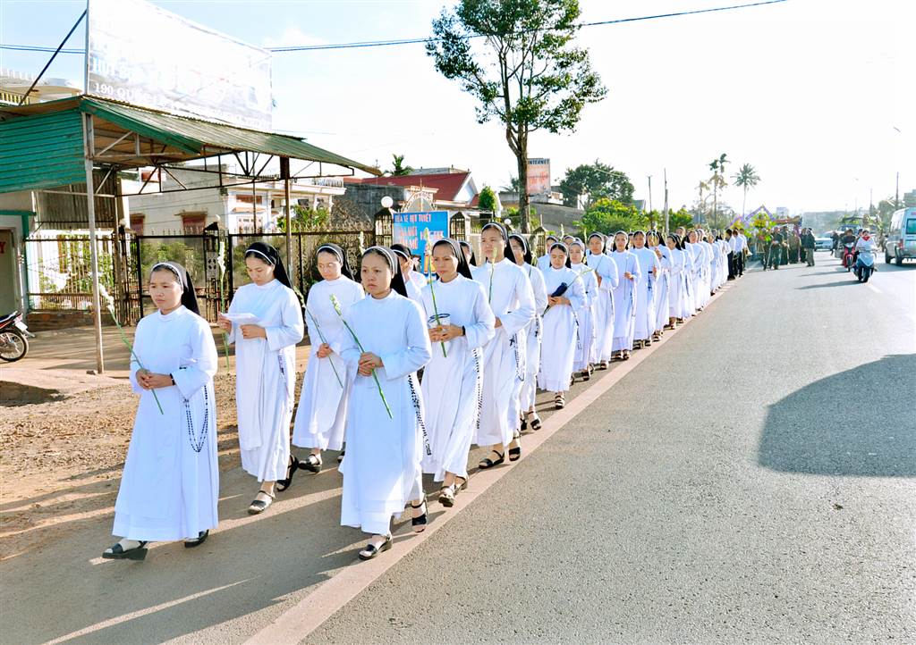 Vào lúc 7 giờ tối thứ Năm, 05/01/2012, chuyến xe 50 chỗ rời Tu viện Trung ương, trực chỉ giáo xứ Nam Thiên, Ban Mê Thuật để kịp tham dự thánh lễ an táng Bà Cố Maria Đặng Thị Đồng, thân mẫu của chị Anna Nguyễn Thị Lệ Uyên. Trên xe có chị Bề trên Tổng quyền, các chị trong Hội đồng Hội Dòng, Bề trên và các chị thuộc Tu xá Mẹ Thiên Chúa (nơi chị Uyên đang phục vụ), một số Bề trên cộng đoàn, các chị giáo, các chị cùng lớp với chị Uyên và một số chị em đến từ các cộng đoàn. Chuyến xe đi đến cộng đoàn thánh Phaolô Trở Lại (thuộc giáo họ Lộ Đức, Phú Long) bình an và có đủ thời gian cho chị em kịp điểm tâm và chuẩn bị tu phục tham dự thánh lễ. Ngay khi điểm tâm xong, chị em tiếp tục lên xe đến nhà chị Lệ Uyên để chia buồn với gia đình và cùng gia đình di quan lên Nhà Thờ giáo xứ Nam Thiên.