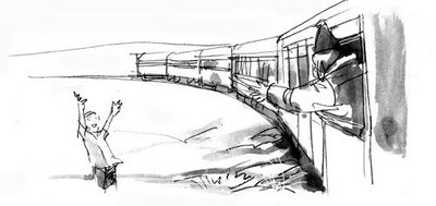 Chú bé hồi hộp đợi. Đoàn tàu phủ đầy bụi đường với những toa đông đúc hành khách như một thế giới khác lạ, ầm ầm lướt qua thung lũng. Chú bé vụt đứng dậy, háo hức đưa tay vẫy, chỉ mong có một hành khách nào đó vẫy lại chú. Nhưng hành khách – mệt mỏi vì suốt một ngày trên đường- chẳng ai để ý vẫy lại chú bé không quen biết.