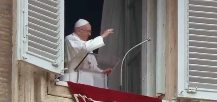 Cuối Thánh Lễ ngày 28 tháng Mười, 2018, trong Vương cung Thánh đường Vatican, bế mạc Đại Hội đồng Thông thường của Thượng Hội đồng Giám mục với chủ điểm: “Giới trẻ, Đức tin, và sự Phân định Ơn gọi,” Đức Thánh Cha Phanxicô xuất hiện trên cửa sổ phòng làm việc của ngài trong Điện Tông tòa, đọc Kinh Truyền Tin với những người tập trung trong Quảng trường Thánh Phê-rô.