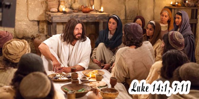 Scripture: Luke 14:1, 7-11 1 One sabbath when he went to dine at the house of a ruler who belonged to the Pharisees, they were watching him. 7 Now he told a parable to those who were invited, when he marked how they chose the places of honor, saying to them, 8 “When you are invited by any one to a marriage feast, do not sit down in a place of honor, lest a more eminent man than you be invited by him; 9 and he who invited you both will come and say to you, `Give place to this man,’ and then you will begin with shame to take the lowest place. 10 But when you are invited, go and sit in the lowest place, so that when your host comes he may say to you, `Friend, go up higher’; then you will be honored in the presence of all who sit at table with you. 11 For every one who exalts himself will be humbled, and he who humbles himself will be exalted.” |