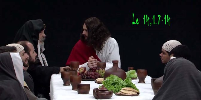 Có phải dường như Chúa Giêsu đang cho những người khách ăn tối cùng với mình những bài học về lễ nghi ở đây? Người nói với họ nên mời những ai và không nên mời ai đến bữa tiệc của họ. Người khuyên họ về cách chọn chỗ ngồi tại bàn tiệc. Thậm chí Người còn chỉ cho họ cách để tránh sự lúng túng khi chủ nhà phải mời họ chuyển đến một nơi ít sang trọng hơn!