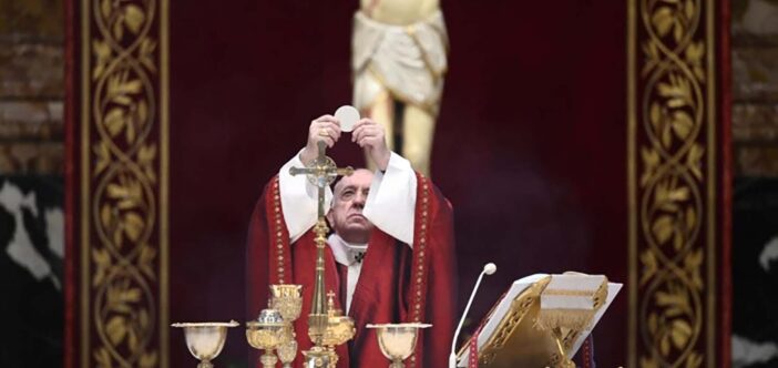 Hôm nay chúng ta làm phép các dây pallium sẽ được trao cho vị Hồng y niên trưởng của Hồng y đoàn và các vị Tổng Giám mục Chính tòa được sắc phong năm ngoái. Dây pallium là một biểu tượng của sự hiệp nhất giữa con chiên và người chủ chăn, là người vác con chiên trên vai, như Chúa Giêsu, để không bao giờ bị chia cách khỏi nó. Ngày nay cũng vậy, theo một truyền thống tốt đẹp, chúng ta hiệp nhất theo một cách đặc biệt với Thượng phụ Đại kết Constantinople. Thánh Phêrô và Anrê là anh em, và khi có thể, chúng ta thực hiện những cuộc viếng thăm huynh đệ vào những ngày lễ của các ngài. Chúng ta thực hiện điều đó không phải vì tính ngoại giao, nhưng như là phương tiện cho hành trình cùng nhau tiến đến mục tiêu mà Chúa đã chỉ ra cho chúng ta: là mục tiêu hiệp nhất trọn vẹn. Hôm nay chúng ta không thể thực hiện được việc này vì sự khó khăn của việc đi lại do coronavirus, nhưng khi cha đến viếng di cốt của Thánh Phêrô, trong sâu thẳm tâm hồn cha cảm nhận được hiền huynh thân yêu Bartholomew. Các ngài ở đây, cùng với chúng ta.