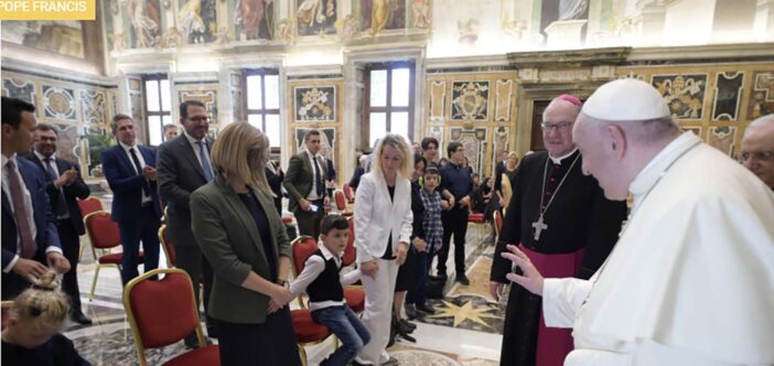 Cha chào đón các con đến Vatican này. Cha rất hạnh phúc được nhìn thấy các con, và cha đọc trong thấy trong mắt các con cũng hạnh phúc được ở đây với cha.