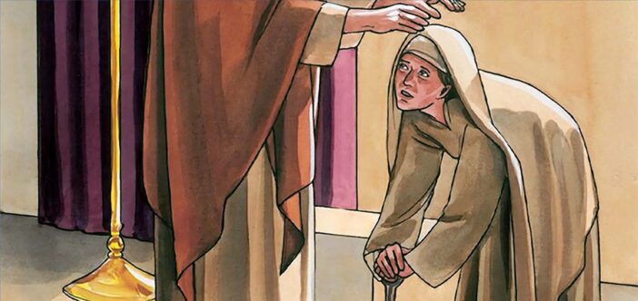 “Người đặt tay trên bà ấy, tức thì bà đứng thẳng lên”.