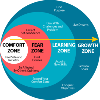 Điều gì đang chờ đợi bạn ở bên ngoài vùng an toàn? Theo Darius Foroux, khi thoát khỏi ‘Vùng An Toàn, Comfort zone’, bạn sẽ bước vào ‘Vùng Sợ Hãi, Fear zone’ và ‘Vùng Học Hỏi, Learning zone’, trước khi đến với ‘Vùng Tăng Trưởng, Growth zone’. Nghiên cứu cho biết, có đến 80% người trên thế giới ở mãi trong ‘Vùng An Toàn’; chỉ 20% số còn lại nằm trong 3 vùng kế tiếp; càng ra phía ngoài, số người càng giảm. Nói cách khác, chỉ có một số rất ít có thể đạt đến ‘Vùng Tăng Trưởng’.