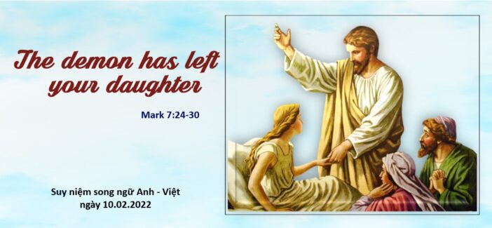 Mc 7,24-30 24 Đức Giê-su đứng dậy, rời nơi đó, đến địa hạt Tia. Người vào một nhà nọ mà không muốn cho ai biết, nhưng không thể giấu được.25 Thật vậy, một người đàn bà có đứa con gái nhỏ bị quỷ ám, vừa nghe nói đến Người, liền vào sấp mình dưới chân Người.26 Bà là người Hy-lạp, gốc Phê-ni-xi thuộc xứ Xy-ri. Bà xin Người trừ quỷ cho con gái bà.27 Người nói với bà: “Phải để cho con cái ăn no trước đã, vì không được lấy bánh dành cho con cái mà ném cho chó con.”28 Bà ấy đáp: “Thưa Ngài, đúng thế, nhưng chó con ở dưới gầm bàn lại được ăn những mảnh vụn của đám trẻ con.”29 Người nói với bà: “Vì bà nói thế, nên bà cứ về đi, quỷ đã xuất khỏi con gái bà rồi.”30 Về đến nhà, bà thấy đứa trẻ nằm trên giường và quỷ đã xuất. |