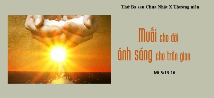 Trong “Bài giảng trên núi”, sau khi công bố các Mối Phúc, Đức Giêsu nói với các môn đệ, và qua các môn đệ, Ngài nói với tất cả chúng ta, là Ki-tô hữu: “Chính anh em là muối cho đời”; “chính anh em là ánh sáng cho trần gian”. Hai lời mời gọi này của Đức Giêsu thường được hiểu tách biệt nhau và theo nghĩa thực hành: làm muối cho đời, nghĩa là làm cho môi trường sống của mình thêm “mặt mà” tình bác ái và yêu thương; làm ánh sáng cho trần gian, nghĩa là làm gương sáng về đời sống đức tin và đạo đức.