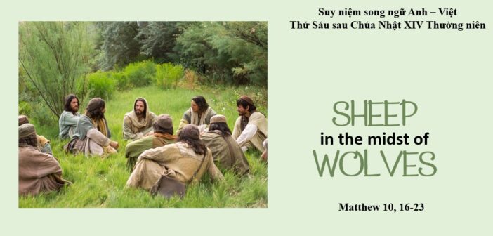 Chiên giữa bầy sói – khôn ngoan và trong trắng Mt 10,16-23 16 Này, Thầy sai anh em đi như chiên đi vào giữa bầy sói. Vậy anh em phải khôn như rắn và đơn sơ như bồ câu.17 “Hãy coi chừng người đời. Họ sẽ nộp anh em cho các hội đồng, và sẽ đánh đập anh em trong các hội đường của họ.18 Và anh em sẽ bị điệu ra trước mặt vua chúa quan quyền vì Thầy để làm chứng cho họ và các dân ngoại được biết.19 Khi người ta nộp anh em, thì anh em đừng lo phải nói làm sao hay phải nói gì, vì trong giờ đó, Thiên Chúa sẽ cho anh em biết phải nói gì:20 thật vậy, không phải chính anh em nói, mà là Thần Khí của Cha anh em nói trong anh em.21 “Anh sẽ nộp em, em sẽ nộp anh cho người ta giết; cha sẽ nộp con, con cái sẽ đứng lên chống lại cha mẹ và làm cho cha mẹ phải chết.22 Vì danh Thầy, anh em sẽ bị mọi người thù ghét. Nhưng kẻ nào bền chí đến cùng, kẻ ấy sẽ được cứu thoát.23 “Khi người ta bách hại anh em trong thành này, thì hãy trốn sang thành khác. Thầy bảo thật anh em: anh em chưa đi hết các thành của Ít-ra-en, thì Con Người đã đến. |