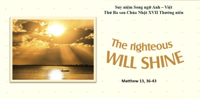 Người công chính sẽ chiếu sáng như mặt trời trong nước Cha Mt 13,36-43 36 Bấy giờ, Đức Giê-su bỏ đám đông mà về nhà. Các môn đệ lại gần Người và thưa rằng: “Xin Thầy giải nghĩa dụ ngôn cỏ lùng trong ruộng cho chúng con nghe.”37 Người đáp: “Kẻ gieo hạt giống tốt là Con Người.38 Ruộng là thế gian. Hạt giống tốt, đó là con cái Nước Trời. Cỏ lùng là con cái Ác Thần.39 Kẻ thù đã gieo cỏ lùng là ma quỷ. Mùa gặt là ngày tận thế. Thợ gặt là các thiên thần.40 Vậy, như người ta nhặt cỏ lùng rồi lấy lửa đốt đi thế nào, thì đến ngày tận thế cũng sẽ xảy ra như vậy.41 Con Người sẽ sai các thiên thần của Người tập trung mọi kẻ làm gương mù gương xấu và mọi kẻ làm điều gian ác, mà tống ra khỏi Nước của Người,42 rồi quăng chúng vào lò lửa; ở đó, chúng sẽ phải khóc lóc nghiến răng.43 Bấy giờ người công chính sẽ chói lọi như mặt trời, trong Nước của Cha họ. Ai có tai thì nghe. |