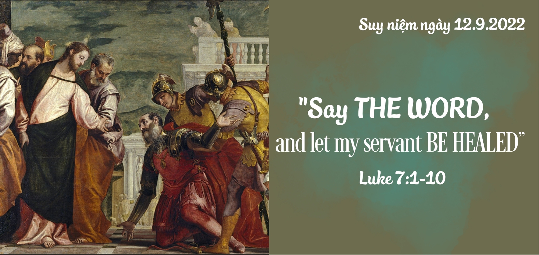 “Hãy nói một lời thì đầy tớ của tôi sẽ được phục hồi” Lc 7,1-10 1 Sau khi đã nói hết những lời ấy cho dân chúng nghe, Đức Giê-su vào thành Ca-phác-na-um.2 Một viên đại đội trưởng kia có người nô lệ bệnh nặng gần chết. Ông ta yêu quý người ấy lắm.3 Khi nghe đồn về Đức Giê-su, ông cho mấy kỳ mục của người Do-thái đi xin Người đến cứu sống người nô lệ của ông.4 Họ đến gặp Đức Giê-su và khẩn khoản nài xin Người rằng: “Thưa Ngài, ông ấy đáng được Ngài làm ơn cho.5 Vì ông quý mến dân ta. Vả lại chính ông đã xây cất hội đường cho chúng ta.”6 Đức Giê-su liền đi với họ. Khi Người còn cách nhà viên sĩ quan không bao xa, thì ông này cho bạn hữu ra nói với Người: “Thưa Ngài, không dám phiền Ngài quá như vậy, vì tôi không đáng rước Ngài vào nhà tôi.7 Cũng vì thế, tôi không nghĩ mình xứng đáng đến gặp Ngài. Nhưng xin Ngài cứ nói một lời, thì đầy tớ của tôi được khỏi bệnh.8 Vì chính tôi đây, tuy dưới quyền kẻ khác, tôi cũng có lính tráng dưới quyền tôi. Tôi bảo người này: “Đi! là nó đi; bảo người kia: “Đến! là nó đến; và bảo người nô lệ của tôi: “Làm cái này! là nó làm.”9 Nghe vậy, Đức Giê-su thán phục ông ta, Người quay lại nói với đám đông đang theo Người rằng: “Tôi nói cho các ông hay: ngay cả trong dân Ít-ra-en, tôi cũng chưa thấy một người nào có lòng tin mạnh như thế.”10 Về đến nhà, những người đã được sai đi thấy người nô lệ đã khỏi hẳn. |
