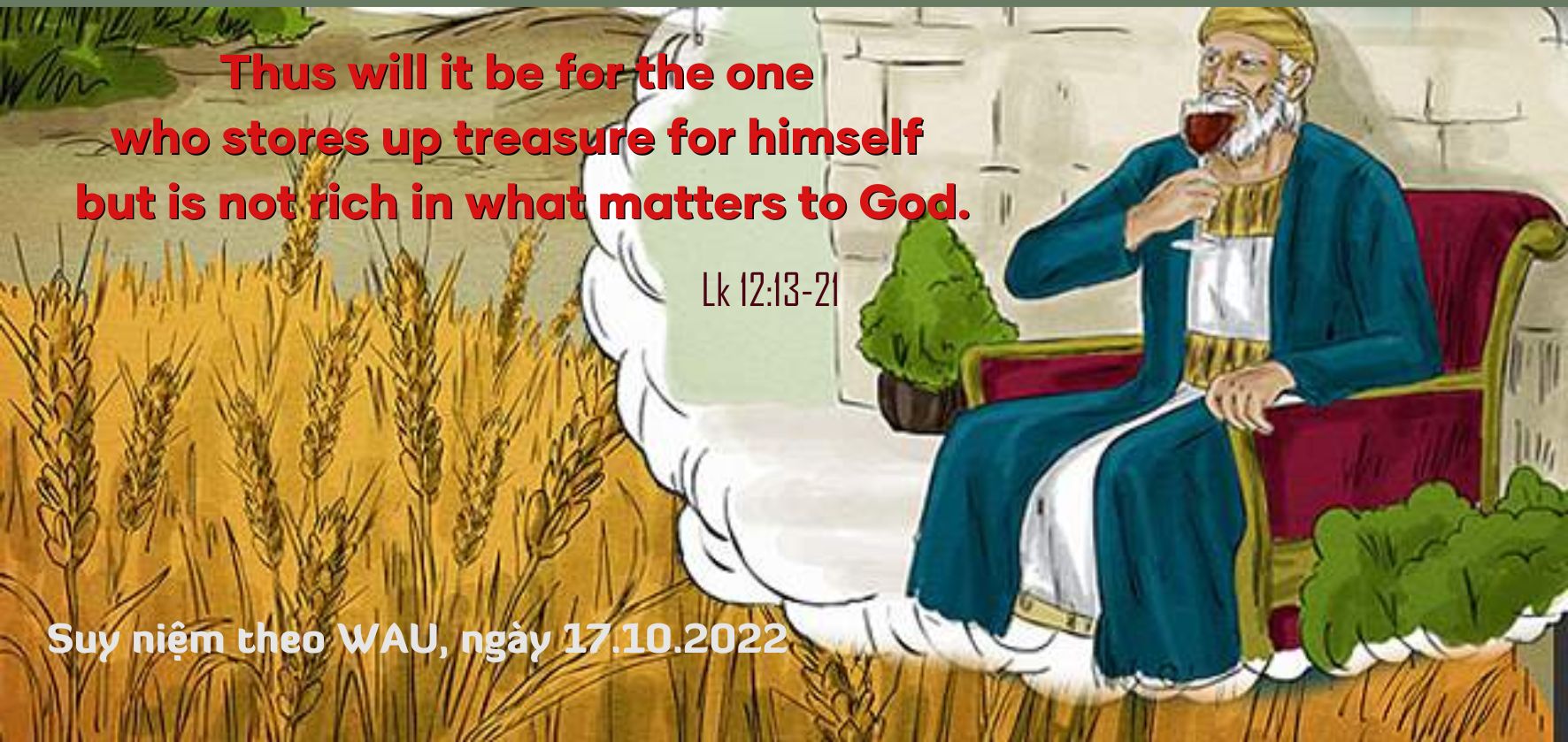 Ấy kẻ nào thu tích của cải cho mình, mà không lo làm giàu trước mặt Thiên Chúa, thì số phận cũng như thế đó