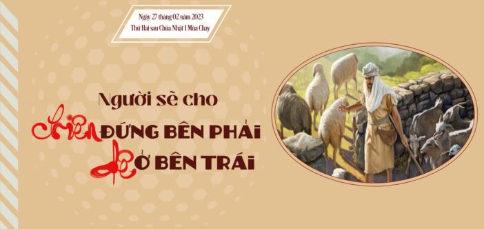 31 “Khi Con Người đến trong vinh quang của Người, có tất cả các thiên sứ theo hầu, bấy giờ Người sẽ ngự lên ngai vinh hiển của Người.32 Các dân thiên hạ sẽ được tập hợp trước mặt Người, và Người sẽ tách biệt họ với nhau, như mục tử tách biệt chiên với dê.33 Người sẽ cho chiên đứng bên phải Người, còn dê ở bên trái.