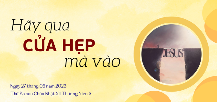 Hãy qua cửa hẹp mà vào, vì cửa rộng và đường thênh thang thì đưa đến diệt vong, mà nhiều người lại đi qua đó. Còn cửa hẹp và đường chật thì đưa đến sự sống, nhưng ít người tìm được lối ấy. (c. 13-14)