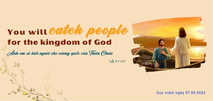 Suy niệm: Tại sao Đức Giêsu làm phép lạ bắt được nhiều cá? Rõ ràng đám đông dân chúng đã thúc đẩy Đức Giêsu làm phép lạ này. Họ đói khát Thiên Chúa và ao ước lắng nghe lời Người. Đức Giêsu muốn dùng cơ hội này để dạy các môn đệ một bài học quan trọng. Mặc dù đã thấm mệt sau một đêm vất vả vô ích, tuy nhiên Phêrô vẫn thực hiện lời yêu cầu của Đức Giêsu: Vâng lời Thầy con xin thả lưới. Khi bạn thất vọng nản lòng, bạn có mau mắn lắng nghe tiếng Chúa và đón nhận mệnh lệnh của Người như Phêrô không? Thiên Chúa mong đợi những điều lớn hơn chúng ta tự mình có thể làm Câu chuyện này nói với chúng ta một chân lý quan trọng về cách thức Thiên Chúa làm việc kinh qua mỗi người chúng ta cho vinh quang của Người. Thiên Chúa mong đợi nơi chúng ta những điều lớn lao hơn mà chúng ta có thể tự sức làm. Khi chúng ta cộng tác vào công việc của Người, chúng ta sẽ hoàn thành vượt quá những gì chúng ta có thể làm bằng sức riêng của mình. Thánh nữ Têrêsa Hài đồng Giêsu, một nữ tu dòng Đức Bà núi Cát Minh chết vì lao phổi ở tuổi 24, đã viết cho một người bạn: “Chúa Giêsu có một tình yêu không thể hiểu được đối với chúng ta, đến nỗi Người ao ước rằng chúng ta chia sẻ với Người trong việc cứu rỗi các linh hồn. Người không ao ước điều gì mà không có chúng ta. Đấng tạo hóa dựng nên vũ trụ này chờ đợi lời cầu nguyện của một linh hồn bé nhỏ nghèo hèn để giúp các linh hồn khác cũng được cứu chuộc như nó bằng giá máu châu báu của Người.” Khi lời Chúa được phán ra, vương quốc của Người được bày tỏ, và quyền năng của Người được thực hiện. Khi người ta đáp trả lời Chúa với đức tin và sự tùng phục, họ được biến đổi và trở nên “một tạo vật mới” trong Đức Kitô (2Cor 5,17). Lời chứng niềm vui của Tin mừng Thiên Chúa tuyển chọn những người tầm thường như bạn và tôi, để làm các sứ giả của Người, và Người sử dụng những biến cố bình thường trong cuộc sống hằng ngày của chúng ta và những tình huống của sự việc để lôi kéo kẻ khác đến vào trong vương quốc của Người. Đức Giêsu nói với chúng ta hôm nay cũng cùng một sứ điệp: chúng ta sẽ “bắt lấy người ta” cho vương quốc của Người, nếu như chúng ta cho phép ánh sáng của Đức Giêsu Kitô soi chiếu ngang qua chúng ta. Thiên Chúa muốn người khác nhìn thấy ánh sáng của Đức Kitô trong chúng ta, trong cách thức chúng ta sống, nói chuyện, và làm chứng cho Tin mừng. Thánh Phaolô nói rằng: “Tạ ơn Thiên Chúa, Đấng hằng cho chúng tôi tham dự cuộc khải hoàn trong Đức Kitô. Vì chúng tôi là hương thơm của Đức Kitô dâng kính Thiên Chúa, tỏa ra giữa những người được cứu độ cũng như những kẻ bị hư mất” (2Cor 2,15). Bạn có làm chứng cho những người sống xung quanh về Tin mừng, và bạn có cầu nguyện cho những người hàng xóm của mình, các bạn đồng nghiệp của mình, và bà con thân quyến của mình, để họ có thể được biết Chúa Giêsu Kitô và lớn lên trong tình yêu của Người không? Lạy Chúa Giêsu, xin đổ tràn đầy lòng con tình yêu và sự trắc ẩn dành cho những ai không biết Chúa hay đi theo Chúa. Ước gì con trở thành nhân chứng tốt lành cho chân lý và ơn cứu độ của Chúa cho gia đình của con, bạn bè của con, và bạn đồng nghiệp của con.