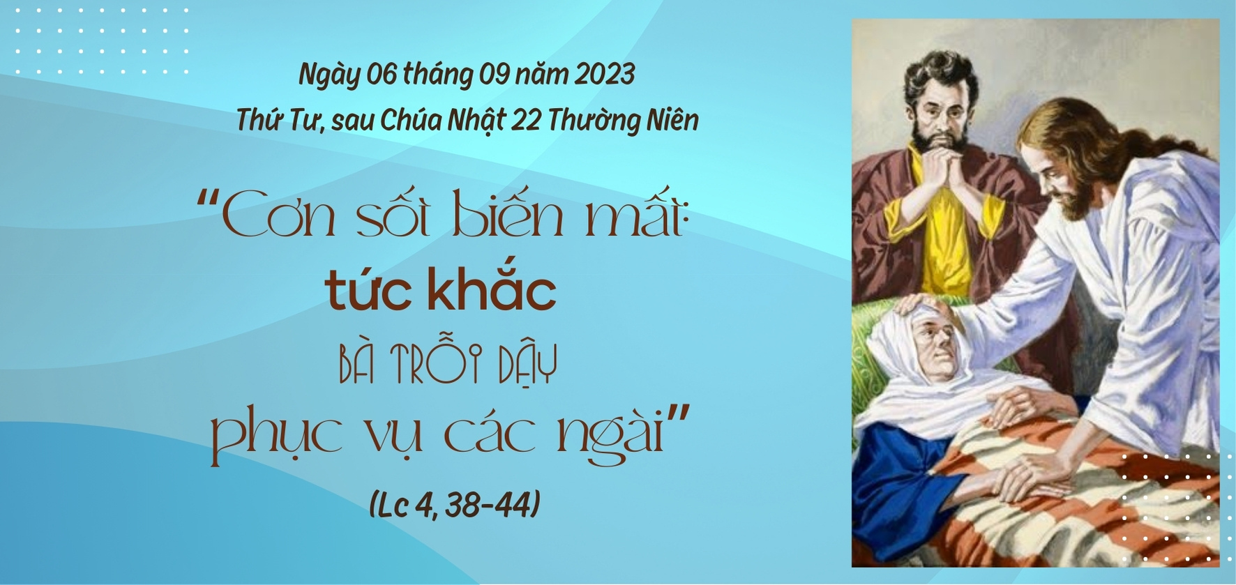 38 Đức Giê-su rời khỏi hội đường, đi vào nhà ông Si-môn. Lúc ấy, bà mẹ vợ ông Si-môn đang bị sốt nặng. Họ xin Người chữa bà.39 Đức Giê-su cúi xuống gần bà, ra lệnh cho cơn sốt, và cơn sốt biến mất: tức khắc bà trỗi dậy phục vụ các ngài.