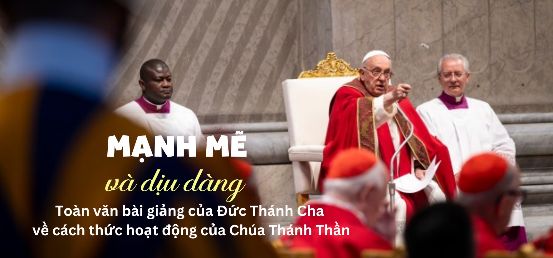 Trình thuật ngày Lễ Ngũ tuần (x. Cv 2:1-11) cho chúng ta thấy hai lĩnh vực hoạt động của Chúa Thánh Thần trong Giáo hội: trong chúng ta và trong sứ mạng, với hai đặc điểm: mạnh mẽ và dịu dàng.