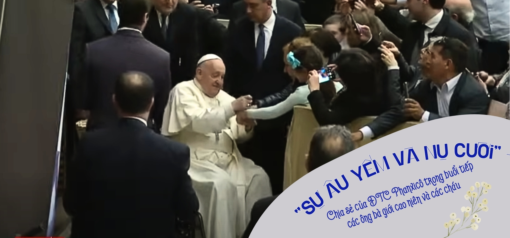 Không phải ngẫu nhiên mà chính hai người già, cha thích suy nghĩ về hai người ông bà, cụ Simeon và bà Anna, đã nhận biết Chúa Giêsu khi Ngài được Đức Maria và Thánh Giuse đưa vào Đền thờ (x. Lc 2:22-38). Chính hai ông bà cụ này đã nhận ra Chúa Giêsu trước những người khác. Họ chào đón Ngài, họ ôm Ngài trong vòng tay và họ hiểu – chỉ họ mới hiểu – điều gì đang xảy ra: rằng Thiên Chúa ở đó, hiện hữu, và rằng Chúa đang dõi theo họ qua đôi mắt của một trẻ thơ. Các con hiểu không? Hai cụ cao niên này, hãy nhìn vào họ. Khi nhìn thấy hài nhi Giêsu, họ mới nhận ra rằng Đấng Mêsia đã đến, Đấng Cứu Thế mà mọi người đang trông đợi. Chính những người già đã hiểu được Mầu nhiệm.