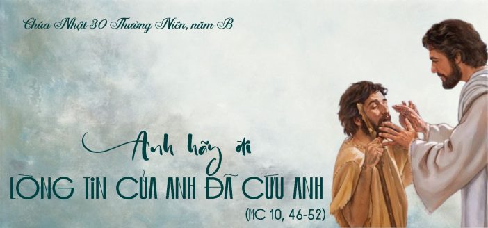 Anh mù Ba-ti-mê đã trở nên sáng mắt, nhờ lời sau đây của Đức Giêsu: Anh hãy đi, lòng tin của anh đã cứu anh. (c. 52)