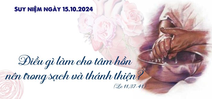 Điều gì làm cho tâm hồn nên trong sạch và thánh thiện? Lc 11,37-41 37 Đức Giê-su đang nói, thì có một ông Pha-ri-sêu mời Người đến nhà dùng bữa. Tới nơi, Người liền vào bàn ăn.38 Thấy vậy, ông Pha-ri-sêu lấy làm lạ vì Người không rửa tay trước bữa ăn.39 Nhưng Chúa nói với ông ấy rằng: “Thật, nhóm Pha-ri-sêu các người, bên ngoài chén đĩa, thì các người rửa sạch, nhưng bên trong các người thì đầy những chuyện cướp bóc, gian tà.40 Đồ ngốc! Đấng làm ra cái bên ngoài lại đã không làm ra cái bên trong sao?41 Tốt hơn, hãy bố thí những gì ở bên trong, thì bấy giờ mọi sự sẽ trở nên trong sạch cho các người. |