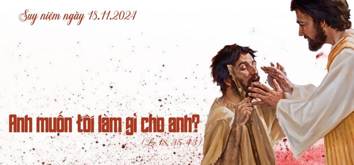 Anh muốn tôi làm gì cho anh? Lc 18, 35-43 35 Khi Đức Giê-su gần đến Giê-ri-khô, có một người mù đang ngồi ăn xin ở vệ đường.36 Nghe thấy đám đông đi qua, anh ta hỏi xem có chuyện gì.37 Họ báo cho anh biết là Đức Giê-su Na-da-rét đang đi qua đó.38 Anh liền kêu lên rằng: “Lạy ông Giê-su, Con vua Đa-vít, xin dủ lòng thương tôi! “39 Những người đi đầu quát nạt, bảo anh ta im đi; nhưng anh càng kêu lớn tiếng: “Lạy Con vua Đa-vít, xin dủ lòng thương tôi! “40 Đức Giê-su dừng lại, truyền dẫn anh ta đến. Khi anh đã đến gần, Người hỏi:41 “Anh muốn tôi làm gì cho anh? ” Anh ta đáp: “Lạy Ngài, xin cho tôi nhìn thấy được.”42 Đức Giê-su nói: “Anh nhìn thấy đi! Lòng tin của anh đã cứu chữa anh.”43 Lập tức, anh ta nhìn thấy được và theo Người, vừa đi vừa tôn vinh Thiên Chúa. Thấy vậy, toàn dân cất tiếng ngợi khen Thiên Chúa. |