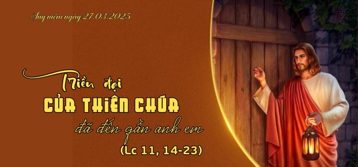 Triều đại của Thiên Chúa đã đến gần anh em Lc 11, 14-23 14 Bấy giờ Đức Giê-su trừ một tên quỷ, và nó là quỷ câm. Khi quỷ xuất rồi, thì người câm nói được. Đám đông lấy làm ngạc nhiên.15 Nhưng trong số đó có mấy người lại bảo: “Ông ấy dựa thế quỷ vương Bê-en-dê-bun mà trừ quỷ.”16 Kẻ khác lại muốn thử Người, nên đã đòi Người một dấu lạ từ trời.17 Nhưng Người biết tư tưởng của họ, nên nói: “Nước nào tự chia rẽ thì sẽ điêu tàn, nhà nọ đổ xuống nhà kia.18 Nếu Xa-tan cũng tự chia rẽ chống lại chính mình, thì nước nó tồn tại sao được? … bởi lẽ các ông nói tôi dựa thế Bê-en-dê-bun mà trừ quỷ.19 Nếu tôi dựa thế Bê-en-dê-bun mà trừ quỷ, thì con cái các ông dựa thế ai mà trừ? Bởi vậy, chính họ sẽ xét xử các ông.20 Còn nếu tôi dùng ngón tay Thiên Chúa mà trừ quỷ, thì quả là Triều Đại Thiên Chúa đã đến giữa các ông.21 Khi một người mạnh được vũ trang đầy đủ canh giữ lâu đài của mình, thì của cải người ấy được an toàn.22 Nhưng nếu có người mạnh thế hơn đột nhập và thắng được người ấy, thì sẽ tước lấy vũ khí mà người ấy vẫn tin tưởng và sẽ đem phân phát những gì đã lấy được.23 “Ai không đi với tôi là chống lại tôi, và ai không cùng tôi thu góp là phân tán. |