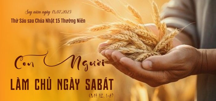 Đi băng qua cánh đồng lúa, các môn đệ đói bụng và bứt lúa ăn. Thấy vậy, những người Pharisêu chất vấn Đức Giêsu: “Ông coi, các môn đệ ông làm điều không được phép làm ngày sabát!” Trước hết, chúng ta ta hãy cảm thương Đức Giêsu, vì trò phạm lỗi, nhưng người ta lại đi chất vấn Thầy, như thể Thầy phải chịu trách nhiệm. Sau này, trong cuộc Thương Khó và trên Thập Giá Đức Giêsu sẽ nhận vào mình tất cả mọi tội lỗi, dưới sự phán xét của Lề Luật, không chỉ của các môn đệ, nhưng là của cả loài người chúng ta.