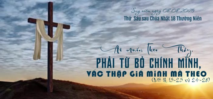 24 Rồi Đức Giêsu nói với các môn đệ: “Ai muốn theo Thầy, phải từ bỏ chính mình, vác thập giá mình mà theo.25 Quả vậy, ai muốn cứu mạng sống mình, thì sẽ mất; còn ai liều mất mạng sống mình vì Thầy, thì sẽ tìm được mạng sống ấy.26 Vì nếu người ta được cả thế giới mà phải thiệt mất mạng sống, thì nào có lợi gì? Hoặc người ta sẽ lấy gì mà đổi mạng sống mình? 27 “Vì Con Người sẽ ngự đến trong vinh quang của Cha Người, cùng với các thiên thần của Người, và bấy giờ, Người sẽ thưởng phạt ai nấy xứng việc họ làm.28 Thầy bảo thật anh em: trong số người có mặt ở đây, có những kẻ sẽ không phải nếm sự chết trước khi thấy Con Người đến hiển trị.”