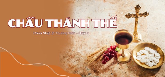 Lạy Chúa Giêsu Thánh Thể, vì muốn chúng con được hân hoan, hạnh phúc no thỏa muôn đời mà Chúa đã dọn tiệc trời thiết đãi. Chúa muốn hết thảy mọi dân nước từ đông, tây, nam bắc, đều trở về sum vầy trong phòng tiệc thần linh đó. Chúa đề ra cho chúng con tiêu chuẩn để có hộ chiếu vào nước trời là “phấn đấu, phải đi qua cửa hẹp”, hãy sống thân mật với Chúa, yêu thương mọi người, từ bỏ hy sinh.