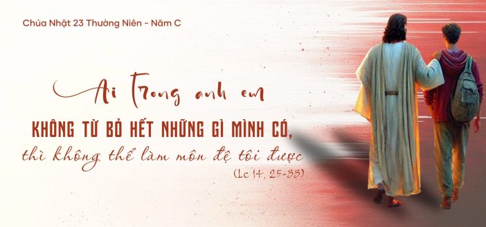 Để trở thành môn đệ của Người, Đức Giêsu đưa ra một đòi hỏi quá khó khăn. Vì thế, chúng ta thường hiểu đòi hỏi này chỉ dành cho một số ít người thôi, đó là các tông đồ, và bây giờ là những người đi tu! Hiểu như vậy có lẽ là không đúng, vì như chúng ta vừa nghe trong bài Tin Mừng, Đức Giêsu nói lời này với đám người rất đông đang cùng đi đường với Ngài; và trong Giáo Hội, dù lập gia đình hay đi tu, chúng ta đều là Kitô hữu, nghĩa là thuộc về Đức Kitô, chúng ta đều là môn đệ của Đức Kitô theo những cách thế khác nhau, trong đời sống hôn nhân hay đời sống tu trì. Hơn nữa, trong lời mời gọi từ bỏ, Đức Giêsu có nêu ra “vợ con”, nghĩa là Ngài ngỏ lời với cả những người đã có gia đình, đã có vợ có chồng và đã cả con cái!
