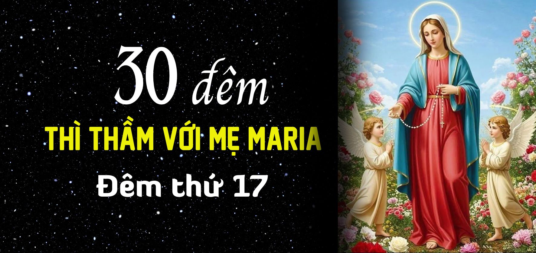 Hôm nay là ngày thứ mười bảy của Tháng Mân Côi, chúng ta – những người con của Mẹ – tiếp tục dành ít phút khi đêm về để đến thì thầm với Mẹ trong chuỗi 30 buổi tối liên tiếp sống với Mẹ trong chủ đề: “THÌ THẦM VỚI MẸ”.