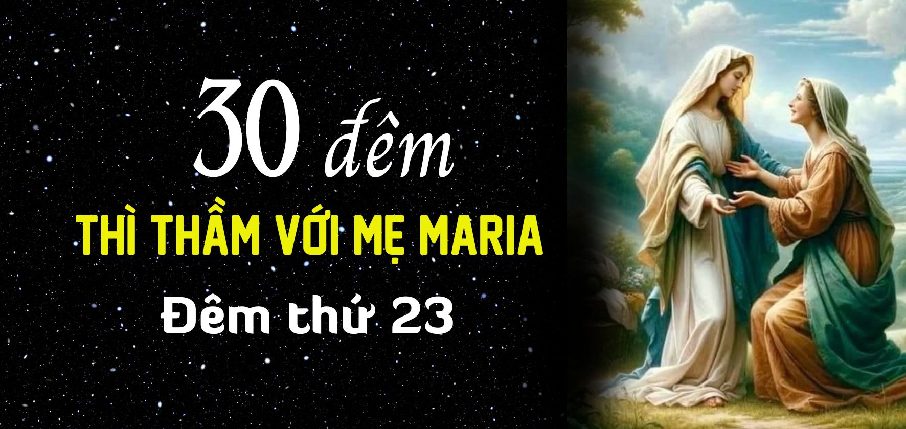 Hôm nay là ngày thứ hai mươi ba của Tháng Mân Côi, chúng ta – những người con của Mẹ – tiếp tục dành ít phút khi đêm về để đến thì thầm với Mẹ trong chuỗi 30 buổi tối liên tiếp sống với Mẹ trong chủ đề: “THÌ THẦM VỚI MẸ”.