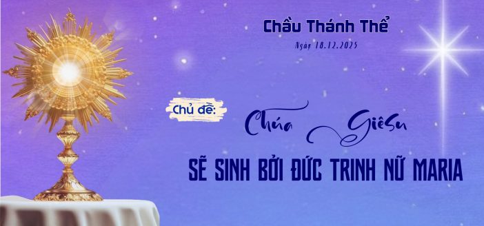 Lạy Chúa Giêsu Thánh Thể, con đến trước sự hiện diện thánh thiêng của Chúa trong giờ Chầu Thánh Thể này, với một tâm hồn khiêm nhường và đầy lòng biết ơn. Lạy Chúa, trong Tin Mừng hôm nay, con được nghe về sự kiện kỳ diệu và đầy ơn cứu độ mà Chúa đã thực hiện, khi Chúa giáng sinh trong hoàn cảnh giản dị nhưng lại vô cùng trọng đại. Chúa đã đến với chúng con qua sự vâng phục của Đức Mẹ Ma-ri-a và sự công chính của Thánh Giuse. Dù trong hoàn cảnh khó khăn và đầy thử thách, cả hai đã mở lòng đón nhận thánh ý của Chúa.