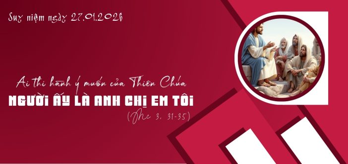 Ai thi hành ý muốn của Thiên Chúa người ấy là anh chị em Tôi Mc 3, 31-35 31 Mẹ và anh em Đức Giê-su đến, đứng ở ngoài, cho gọi Người ra.32 Lúc ấy, đám đông đang ngồi chung quanh Người. Có kẻ nói với Người rằng: “Thưa Thầy, có mẹ và anh em chị em Thầy ở ngoài kia đang tìm Thầy! “33 Nhưng Người đáp lại: “Ai là mẹ tôi? Ai là anh em tôi? “34 Rồi Người rảo mắt nhìn những kẻ ngồi chung quanh và nói: “Đây là mẹ tôi, đây là anh em tôi.35 Ai thi hành ý muốn của Thiên Chúa, người ấy là anh em chị em tôi, là mẹ tôi.” |